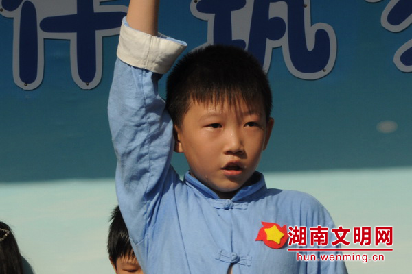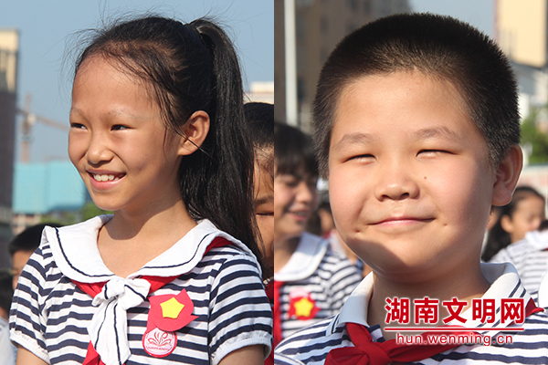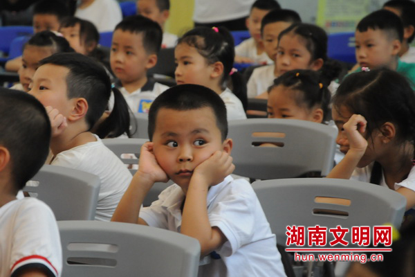 “微笑师生互动环节”孩子们在老师带领下大方绽放笑容。图片来源:湖南文明网