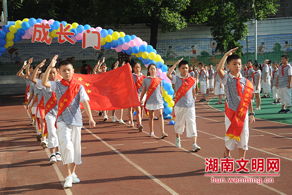 “我能成为一名优秀的小学生啦,感觉好紧张又开心,今天爸爸上通班,还特意骑车来送我”,长沙市芙蓉区燕山小学一年级新生郭书彤说。当孩子们穿过“成长门”,向自己的梦想更进一步时,也是他们学会责任担当的开始。