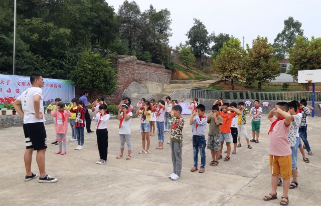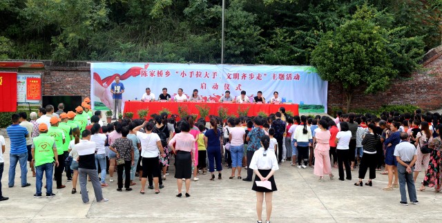 邵阳文明网89月10日讯 9月10日上午,北塔区陈家桥乡“小手拉大手 文明齐步走”主题实践活动启动仪式在该乡合心小学举行。