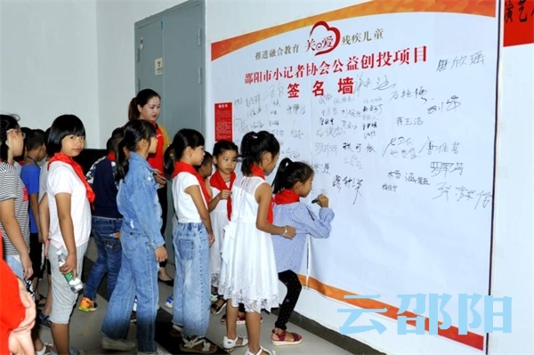 邵阳文明网9月8日讯(记者 贺旭艳)9月8日上午,邵阳市小记者协会携手社会爱心力量,在市松坡图书馆成功举行“推进融合教育,关爱残疾儿童”公益项目启动仪式。市民政局、市残联等相关部门和社会爱心人士、志愿者,以及小记者、残疾儿童亲子等200多人共赴这场爱心之约。
