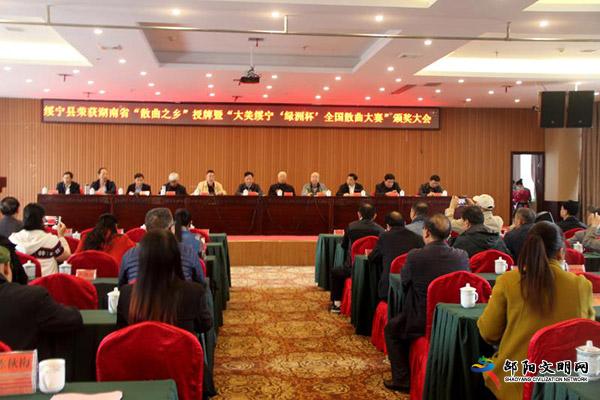 10月16日上午,绥宁县荣获湖南省“散曲之乡”授牌暨“大美绥宁‘绿洲杯’全国散曲大赛”颁奖大会在绥宁县举行。