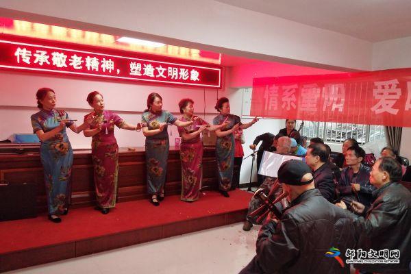 邵阳文明网10月18日讯(记者 吴珺)10月17日下午,邵阳市“红心林”志愿者服务联合会、市文联、大祥区创文办联合组织80余名志愿者,来到大祥区向阳社区开展送文艺、送健康活动,与社区的老人们共同度过了一个有意义的重阳佳节。