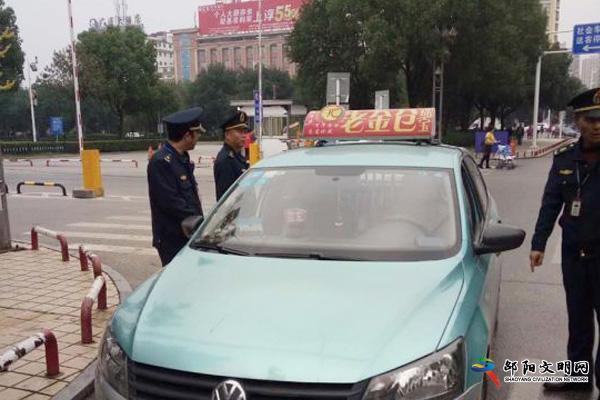 邵阳文明网10月22日讯(记者 程懿 通讯员 凌志华 刘铭)10月21日下午,在邵阳火车站出站口,邵阳市交通运输综合行政执法支队执法人员正对接送乘客的出租车进行检查劝导,督促驾驶员依规、文明驾驶。