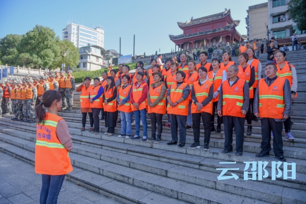 邵阳文明网10月27日讯  10月27日下午,由邵阳军分区、邵阳市城管局主办的资江邵水河道清理活动周启动仪式在市区北门口九江渡口举行。100多名邵阳军分区官兵、环卫工作人员和环保志愿者集体宣誓:“保卫母亲河,我们在行动。”