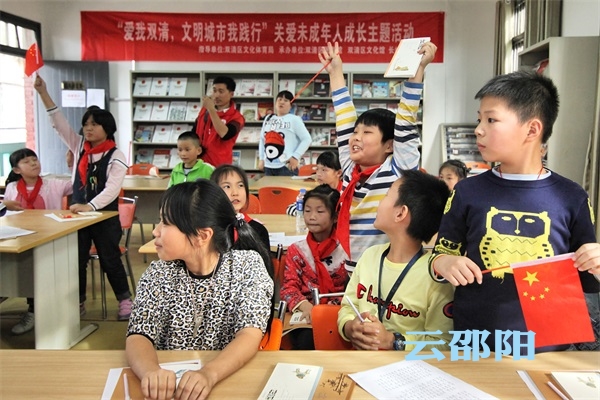 活动现场,双清区青年志愿者组织孩子们进行了《声律启蒙》朗诵、看图识成语等有奖游艺活动,并开展了“创建全国文明城市”基础常识抢答赛,以此培养未成年人良好的生活习惯。