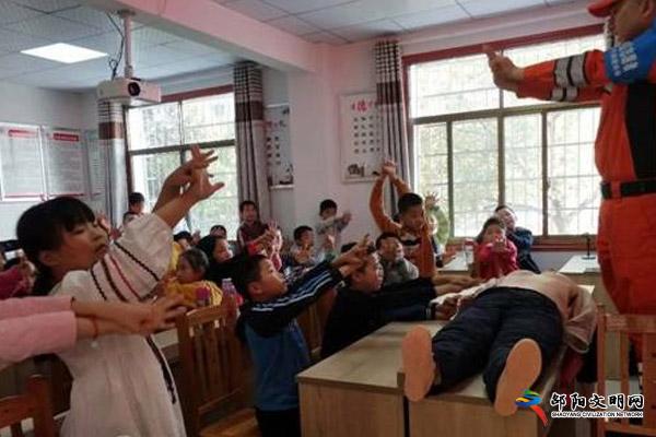 讲座从常见的紧急救援基础知识、突发事件应急医疗救护基本方法、创伤救助基本技术、家庭和社区伤害类事件的救助以及学校和公共场所伤害类事件的救助等方面急救知识向孩子们进行了详细的讲解,针对孩子们的理解能力有限,现场还采取了互动提问、现场模拟演练和组织孩子参与的教学方式。整个培训现场气氛十分活跃,持续了近三个小时,孩子们学得很认真也玩地很开心。