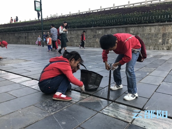 随后,小记者们分成四组,带着手套、拿着夹钳和袋子,分别从沿江桥头和西湖桥头出发,沿着资江南路捡拾街面及绿化带中的白色垃圾。