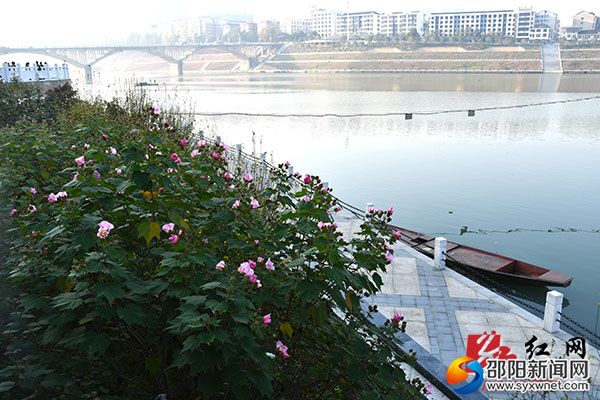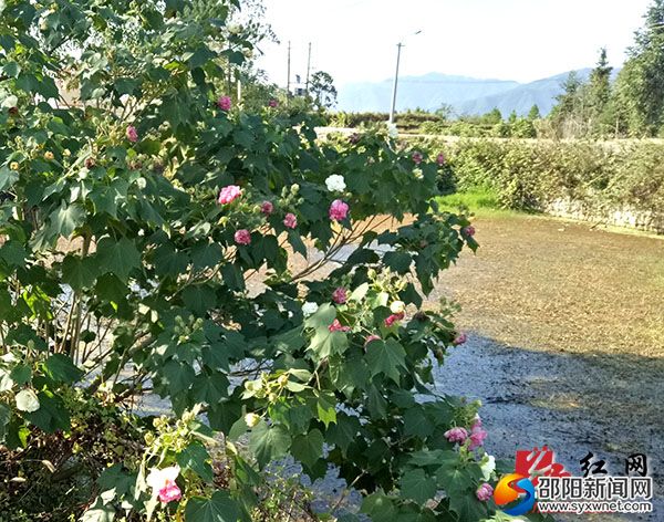 邵阳文明网11月5日讯(通讯员 何雯) 11月4日清晨, 迎着初升的朝阳,新邵县随处可见一丛丛、一株株芙蓉花争奇斗艳、傲然绽放。在池边、在河堤、在墙角、在路旁……一朵朵或白璧无瑕、或粉嫩清丽、或紫红绚烂的芙蓉花随着微风摇曳生姿,演绎着晚秋别样的生机与美丽。