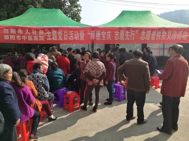 11月28日上午,市人社局联合邵阳市中医医院,组织部分党员干部、医疗卫生工作志愿者到邵阳县长乐乡天子村,开展主题党日活动暨“厚德宝庆 志愿先行”志愿者扶贫义诊活动。