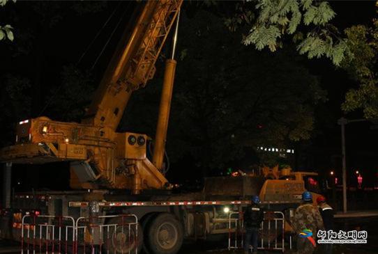 11日凌晨0:30,雨渐大,石永江等4名电力维修人员正在邵水西路安装钢管塔,为尽可能减少对交通的影响,他们将作业时间调整到夜间20时开始。