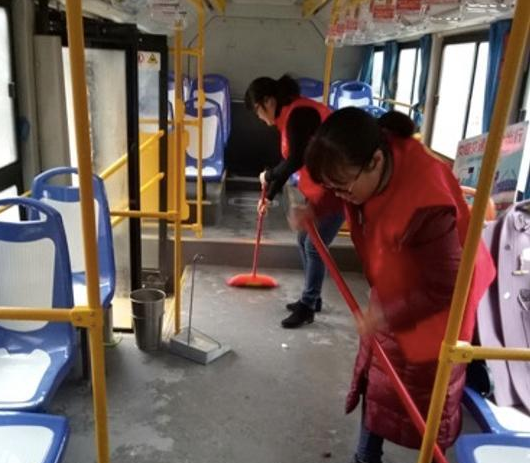 志愿者打扫车厢卫生