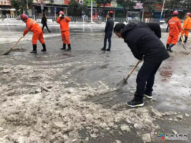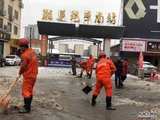 邵阳文明网1月2日讯 从上月29日晚开始,邵阳市迎来暴雪天气,31日上午,邵阳市安监局组织市矿山应急救护支队和本局机关部分成员对市汽车南站站口积雪进行清除,保障过往车辆安全通行。