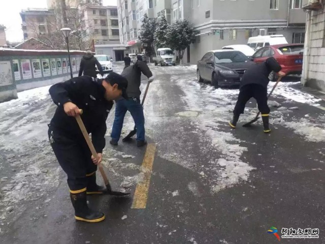 邵阳文明网1月2日讯 上月29日晚到30日邵阳市迎接了大雪天气,整个城市银装素裹。但在邵阳市中医医院,有这样一群可爱的人,他们为了患者能够正常就医,冒着严寒、顶着风雪忙碌在医院各个角落,为病人保驾护航。