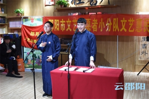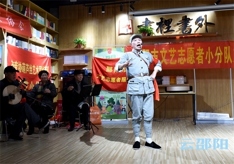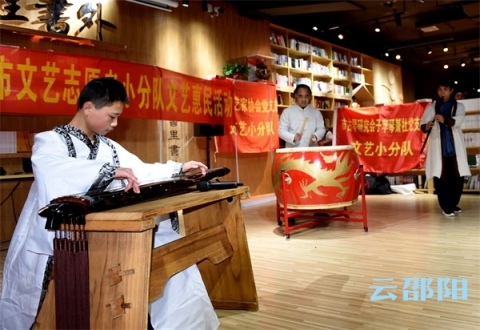 邵阳文明网1月1日讯 上月30日,市文联组织曲协、音协、京剧票友协会等7个协会60余名文艺志愿者在市区“书里书外”举行文艺惠民活动。当日,志愿者表演了器乐、京剧、相声等30个文艺节目,为市民送上了一场视听盛宴。