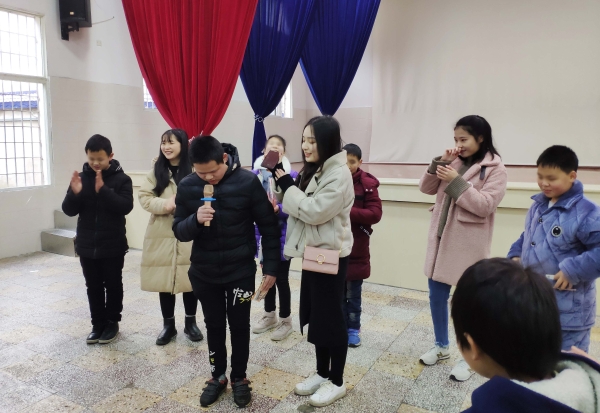 实践活动中,志愿者们与特殊学校的学生们开展了亲切的联谊活动。来自重庆大学播音专业的谷旭阳结合所学专业,指导特校学生诗歌朗诵技巧;声乐专业的李婧等志愿者教学生演唱歌曲,市特校六年级学生郭宇也大方自信地演唱了自己的拿手歌曲,受到了大家的热烈欢迎。