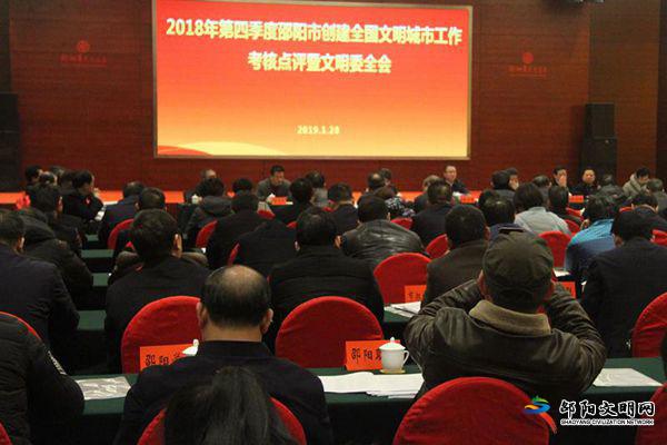 会议通报了2018年全市创建全国文明城市测评迎检工作期间的有关情况,市城管局、市教育局分别就落实文明委成员单位工作任务进行述职; 通报了2018年第四季度全国文明城市创建工作考评情况,大祥区、市统计局、市卫计委、建设银行邵阳分行在会上作表态发言。
