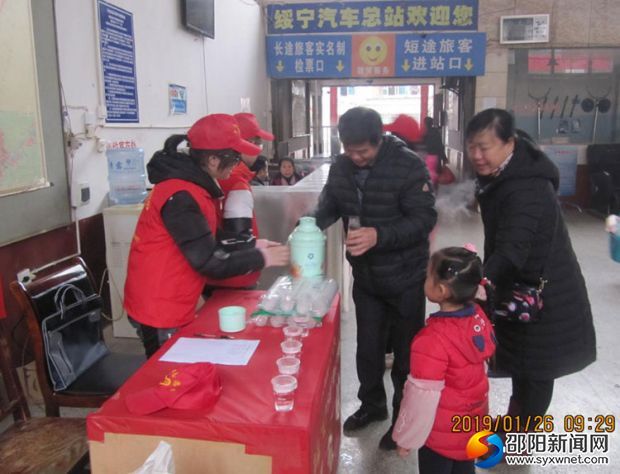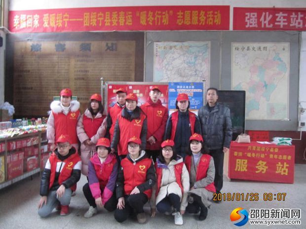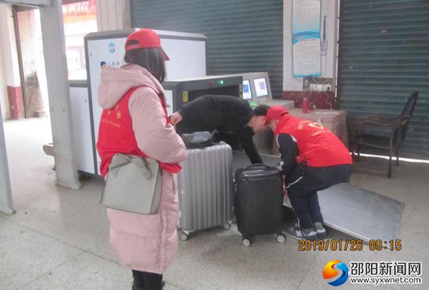 邵阳新闻网1月28日讯 为推动青年志愿者参与春运、服务春运,1月26日,共青团绥宁县委在汽车总站组织青年志愿者服务开展“幸福回家,爱暖绥宁”自愿服务春运“暖冬行动”。