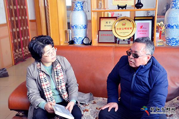 今年68岁的曾令超,是新宁县法院退休干部。曾令超因见义勇为身负重伤双目失明,但他自强不息勤奋写作,在妻子蒋妹的悉心帮助下,先后出版专著13部,共计300多万字,并成为中国作家协会会员、全国首个盲人一级作家。他们儿女成才,家庭幸福,先后被评为全国五好文明家庭、全国最美家庭、全国五好文明家庭标兵户,2017年评为首届全国文明家庭。在曾令超家,周迎春紧握他的手,亲切地与之交谈,称赞他是湖南的保尔、邵阳的骄傲,并叮嘱他劳逸结合,多出精品,弘扬时代正能量!