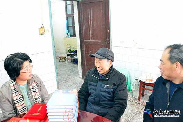 邵阳文明网1月30日讯 1月30日,邵阳市委常委、宣传部长周迎春来到新宁县,看望慰问中国好人、全国优秀志愿者蒋科和著名盲人作家、全国文明家庭曾令超一家,并为他们送去了春节祝福及慰问金。