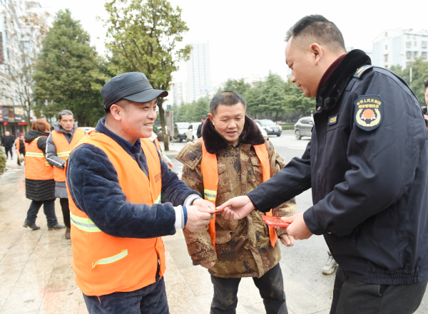 给汽车北站附近的环卫工人送上慰问红包