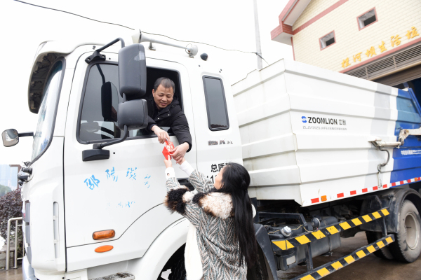 给东互通世纪大道上的机械清扫师傅送上红包