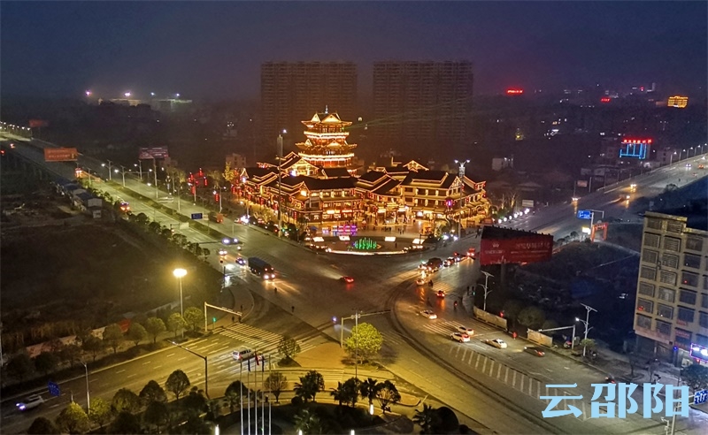 邵阳文明网3月7日讯 3月4日,武冈市春光大道与武冈大道交汇处的同保楼灯火辉煌,一幅迷人的景象。