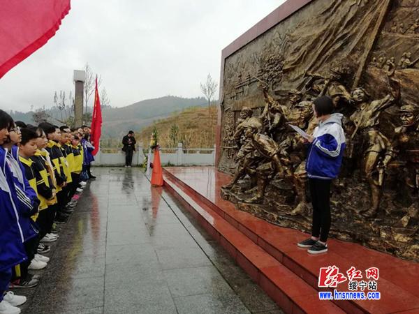 活动中,学生们向为革命捐躯的绥宁籍先烈献花、默哀,听老师讲述绥宁革命史,激发了大家的爱国热情。学生代表发言,号召同学们:“不要忘记党的初心,要肩负历史重任,努力学习,争做党的接班人,向所有‘为民谋幸福,为国谋复兴’的革命先烈学习。”