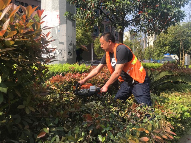 “修剪这道工序,对树木的生长至关重要。”王晖说,不同的植物品种,修剪的方式是不一样的。以正在修剪的绿化带为例,每次修剪一种植物前,园林工人都会用尺子测量,确定树木修剪高度,“蚊木最低,红叶石楠在中间,小叶女桢最高,经过精细造型修剪,绿化带的层次感就出来了。”行道树全面修剪、灌木精修剪、绿化带造型修剪,区别化的修剪方式让城区绿化造型更加多样,从而提升观赏性。