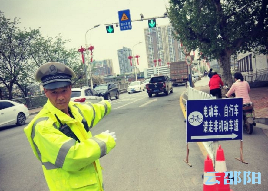 当日10时30分许,已经担任6年交通辅警的欧铭飞正在资江一桥北桥头西侧背对公路指挥自行车和电动自行车行驶非机动车道,以保证资江一桥交通畅通。这时,欧铭飞发现一名拄着拐杖、弯腰驼背的老奶奶正夹在来来往往的车辆间,进退两难。