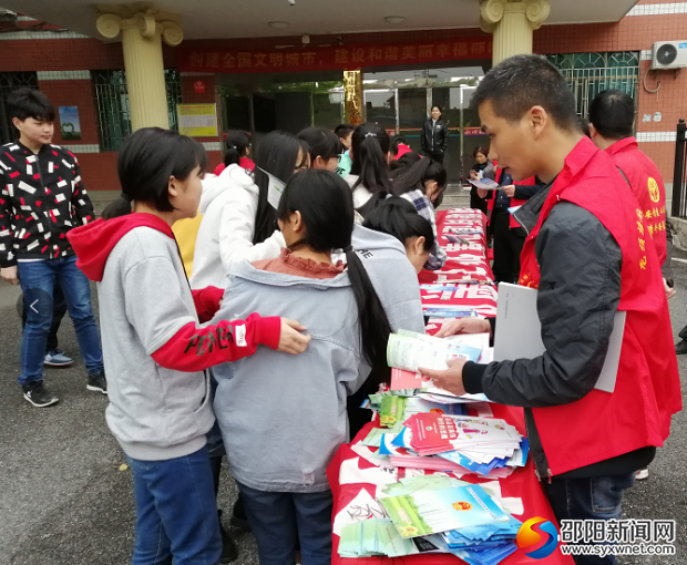 邵阳文明网4月11日讯 4月10日,双清区龙须塘街道组织街道政协委员、办事处干部和志愿者来到邵阳市第九中学开展扫黑除恶暨禁毒知识进校园签名活动,给该校学生普及毒品预防知识,提高学生拒毒防毒意识。这是该街道开展禁毒宣传工作的一个缩影。