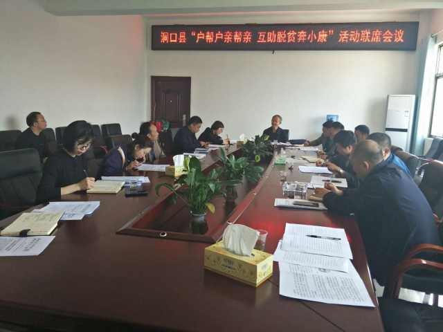 会上,各单位汇报了“户帮户亲帮亲 互助脱贫奔小康”活动开展情况,并对下一阶段的工作进行部署和安排。同时,根据《洞口县“户帮户亲帮亲 互助脱贫奔小康”活动实施方案》,建立了联席会议等各项制度,进一步明确了各单位职责分工。