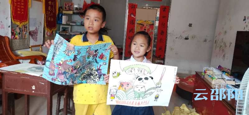 张芷洁和兵兵一起现场展示绘画