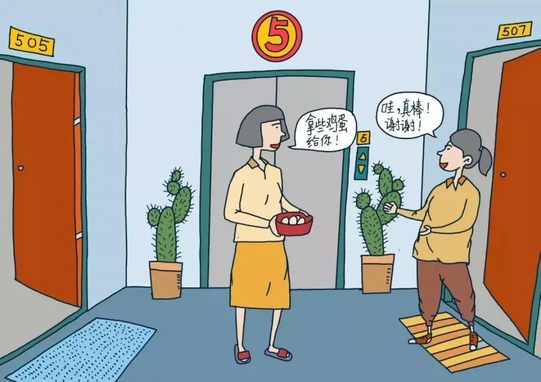我喜欢你,对待邻里总是友善热情,相处得如同老朋友一般亲密。