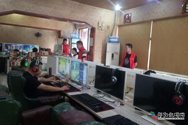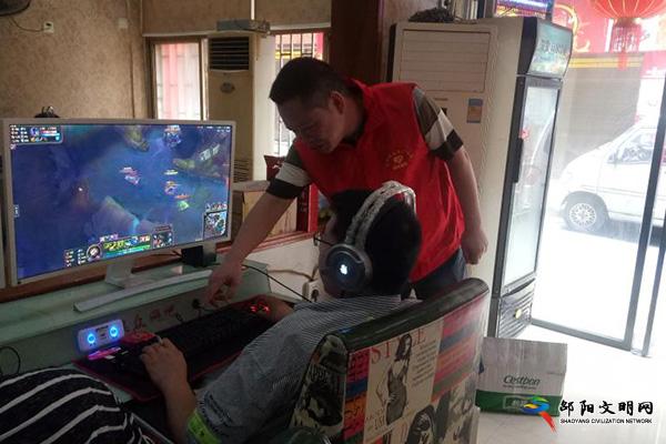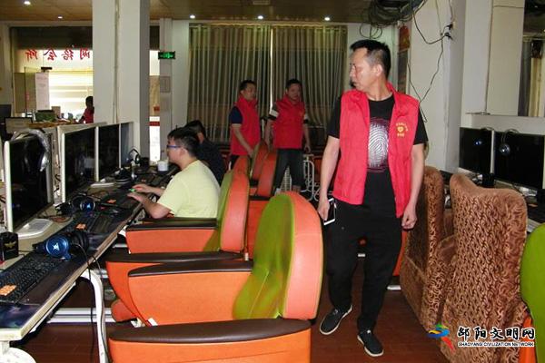 邵阳文明网6月24日讯 6月24日,邵阳市文化市场综合执法局文明上网志愿服务队结合正在开展的网吧专项治理百日行动,组织志愿者前往城区各网吧开展文明上网志愿服务。