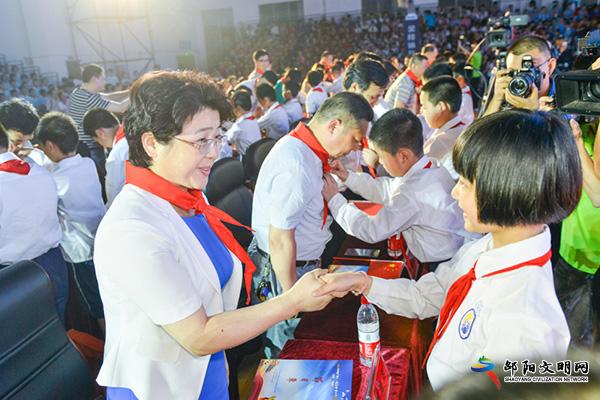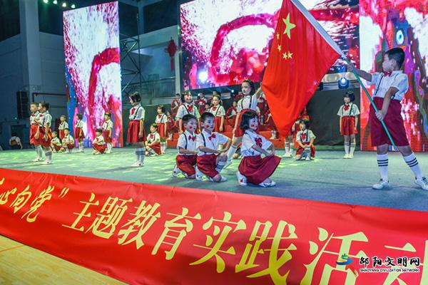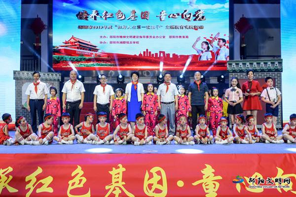 此次活动由邵阳市文明办、市教育局联合主办。市委常委、宣传部部长周迎春出席并讲话。她希望同学们要励志,立鸿鹄志,做奋斗者;要爱党,忠于党,忠于祖国,忠于人民;要担当,奋发向上,做时代先锋;要求真,求真学问,练真本领。希望孩子们牢记党的教导,牢记党的恩情,热爱党、热爱祖国、热爱人民,德智体美劳全面发展,努力成长为担当民族复兴大任的时代新人。