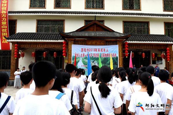 邵阳文明网7月5日讯7月5日上午,邵阳市2019年未成年人“扣好人生第一粒扣子-劳动美”主题教育实践活动在洞口举行。此次活动由市文明办、市教育局主办,近百名师生代表参加了当天的主题教育实践活动。