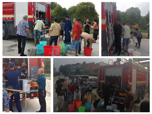 受强降雨影响,北塔区茶元头村多处民房被淹断水断电,洪水退去后,村民面临生活用水难的问题。为了有效解决这个问题,北塔区消防大队在确保正常执勤战备的情况下,派出1辆水罐消防车,4名官兵前往茶元头村送水解困,有效解决了村民饮水难的问题。村民们纷纷感激地说:“消防同志,你们辛苦了!真的太感谢你们了!”