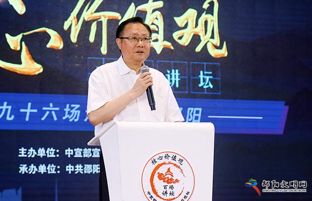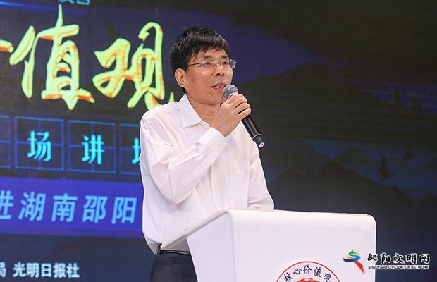 光明日报副总编辑李春林主持,中宣部宣教局副局长孔德龙,湖南省委宣传部副部长、省文明办主任刘进能,邵阳市委副书记、市长刘事青,市委理论学习中心组成员参加活动。