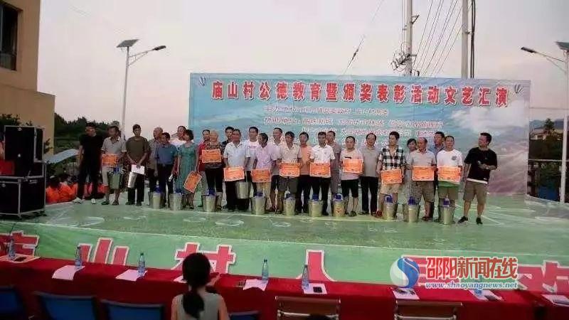 邵阳文明网8月1日讯 为进一步推进社会公德教育,引导群众培育和践行社会主义核心价值观,7月28日下午,新邵县坪上镇庙山村公德教育暨颁奖表彰活动文艺汇演在村级活动中心隆重举行。