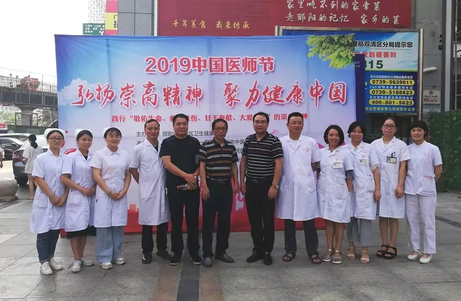 邵阳文明网8月20日讯 为庆祝第二届“中国医师节”,弘扬“敬佑生命、救死扶伤、甘于奉献、大爱无疆”的精神,进一步推动全社会形成尊医重卫的良好氛围,8月19日上午,邵阳市中医医院组织专家团队前往双清区大汉步行街广场开展“弘扬崇高精神,聚力健康中国——2019中国医师节”大型义诊活动。