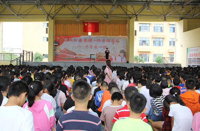 邵阳文明网9月3日讯 9月2日下午,由邵阳市文明办举办的主题为“传承红色基因•向国旗敬礼”开学第一课示范宣讲活动在洞口思源学校举行,为该校七年级新生带来了新学期别开生面的第一课。
