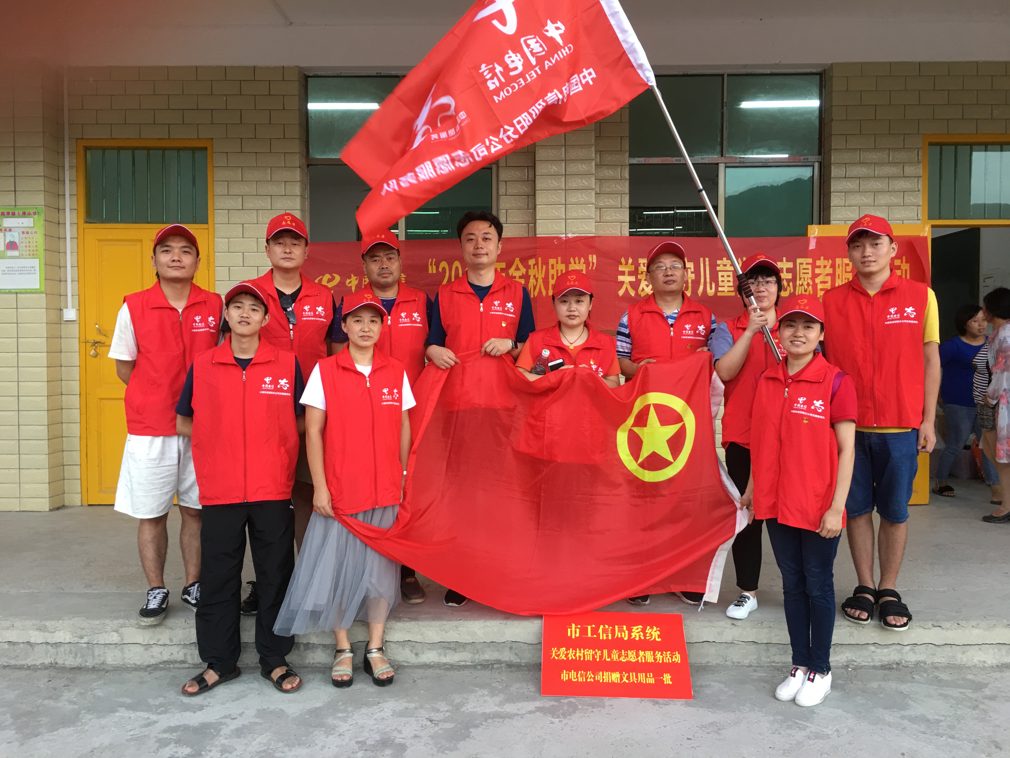 邵阳文明网9月11日讯 9月9日,为进一步弘扬“奉献、友爱、互助、进步”的志愿服务精神,庆祝第35个教师节,中国电信邵阳分公司组织新入职大学生代表、党团员代表与市工信局、天闻印务邵阳分公司开展了“金秋助学 关爱农村留守儿童”志愿服务活动,到扶贫点隆回县高坪镇上坪村的上坪小学举行了捐赠仪式和走访慰问教师活动。