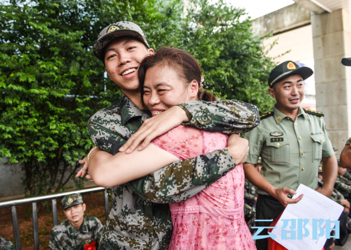 一位即将前往福建的新兵与妈妈拥抱道别