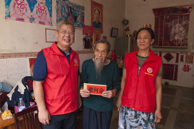 此次慰问活动分为三个小组,分别对花塔社区4户贫困户进行走访慰问。一组志愿者慰问了社区老党员周垂云,周老爷子今年已经90岁,拥有50年的老党龄,生活条件艰苦,志愿者陈湘萍握住周老爷子的手道“老人家身体好吗”,周老爷子笑着回答“感谢党和政府的照顾,我的身体硬朗的很”。之后,志愿者们边听周老爷子讲述他老党员的感悟,边拿起抹布、扫把为了周老爷子打扫起卫生来,并为周老爷子送上500元的慰问金,以表心意。
