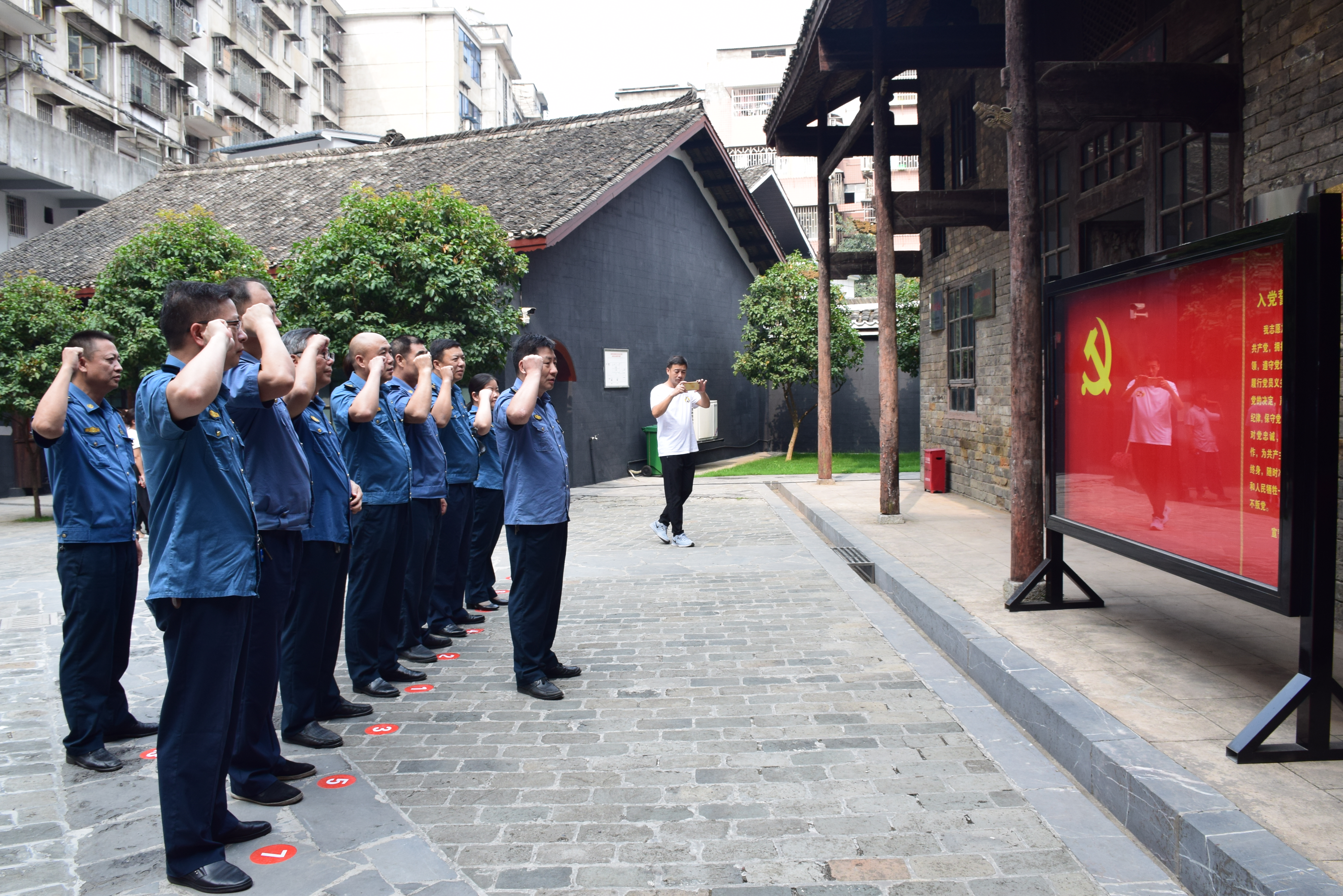 邵阳文明网9月17日讯 “我志愿加入中国共产党,拥护党的纲领……”9月16日,邵阳市交通运输综合行政执法支队党委班子成员、各党支部书记一行,来到市区红色革命和爱国主义教育基地——八路军驻湘通讯处旧址,重温入党誓词,开展革命传统教育,接受思想洗礼,深入开展“不忘初心、牢记使命”主题教育活动。