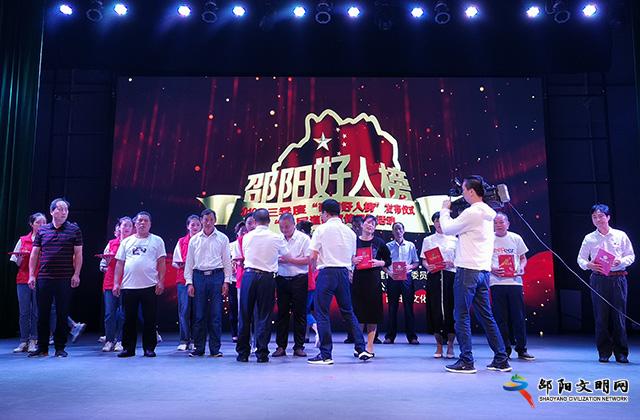 本次活动由邵阳市委宣传部、市文明办、市创文办主办。三季度“邵阳好人”通过推荐、投票、评审等环节,共评出助人为乐、见义勇为、诚实守信、敬业奉献、孝老爱亲5个类别16人(组)邵阳好人。