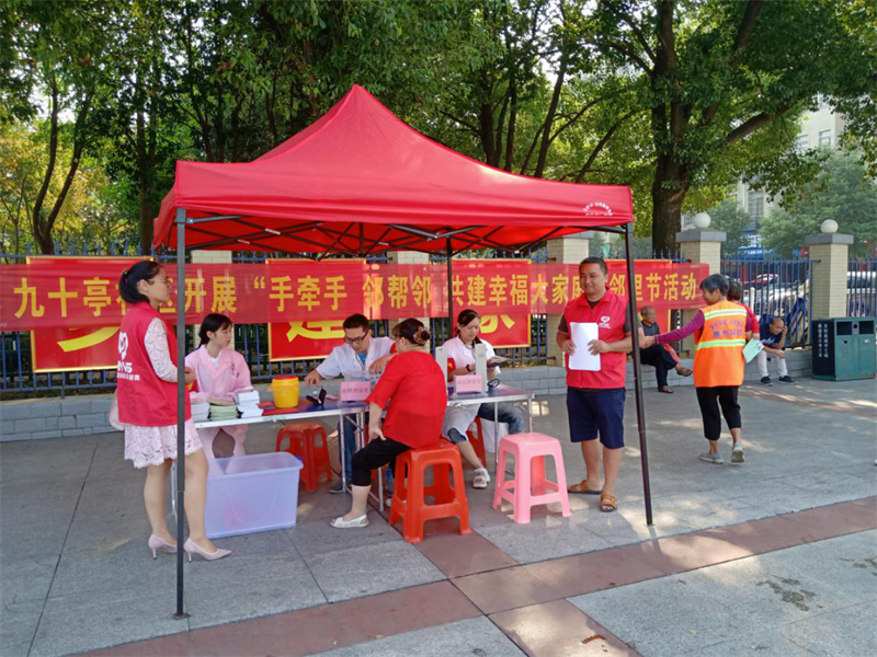 邵阳文明网9月25日讯 9月20日上午,火车南站街道九十亭社区联合街道卫生服务中心,在火车南站魏源广场开展“手牵手、邻帮邻,共建幸福大家庭”邻里节活动。活动中,志愿者对有需要的居民提供了多项免费检查以及各项咨询服务,并到社区孤寡老人李秀华家中,对老人进行了慰问和义务诊疗,帮助老人整理房间、打扫卫生。