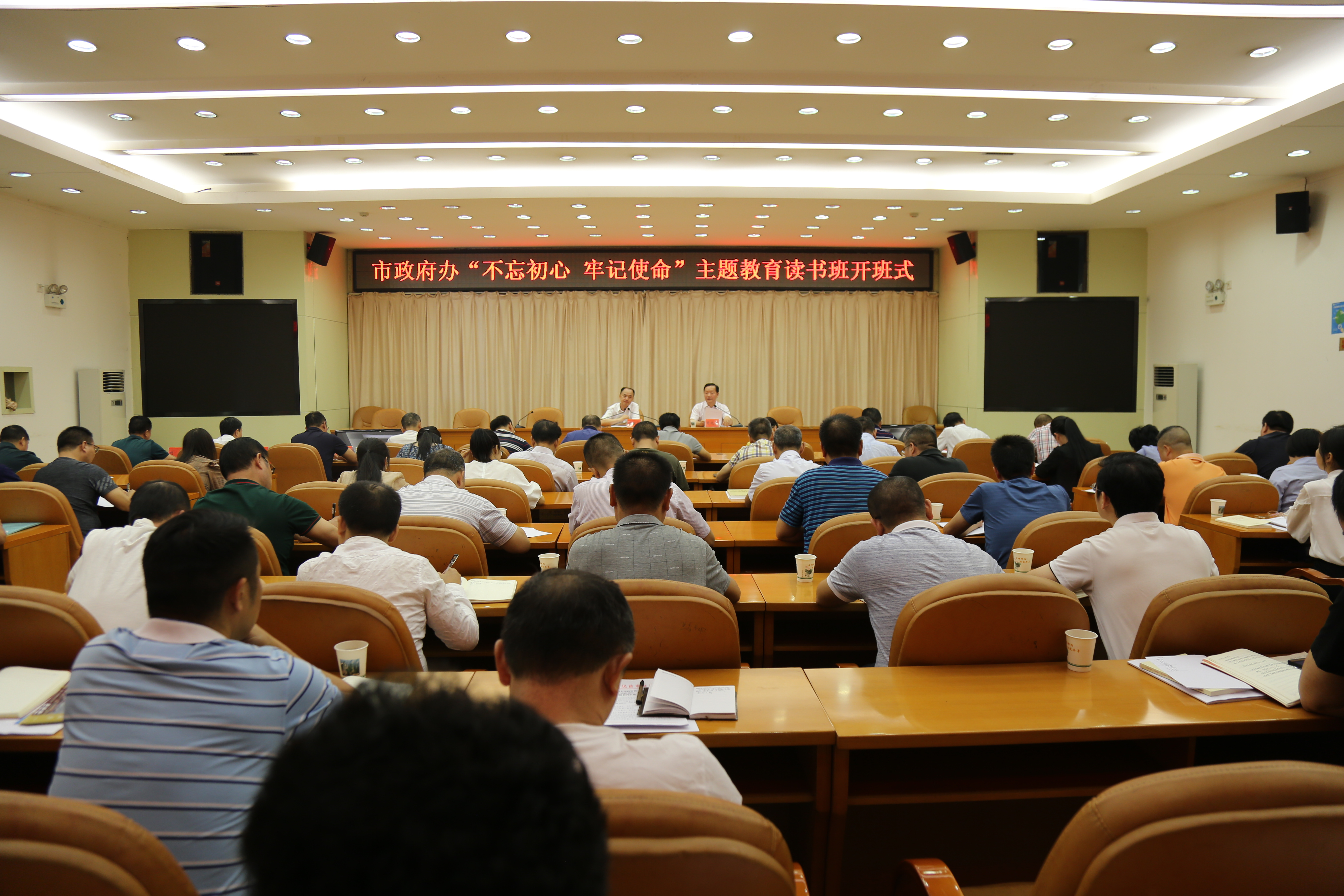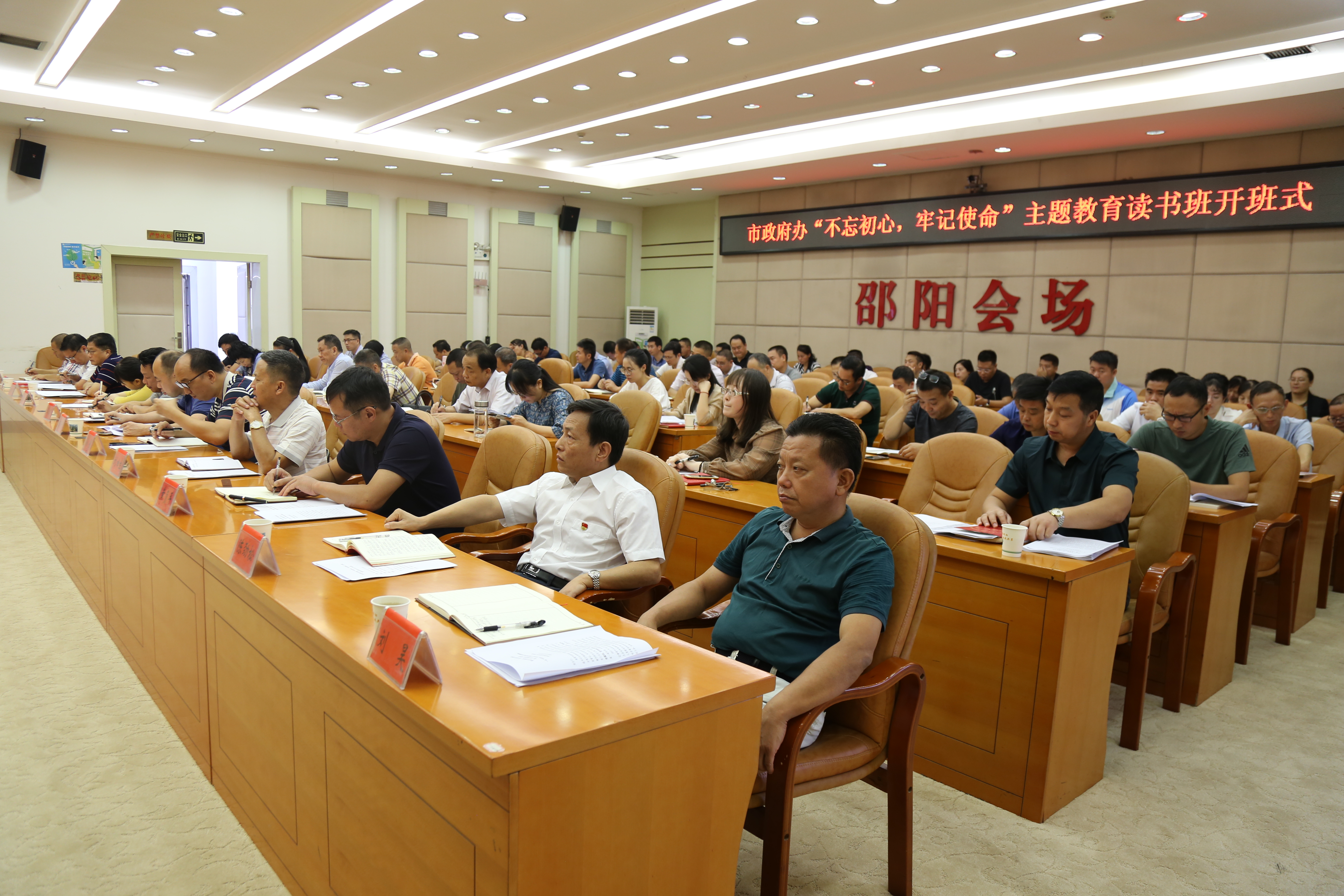 邵阳文明网9月26日讯 根据市委“不忘初心、牢记使命”主题教育的工作要求,9月24日上午,市政府机关党组“不忘初心、牢记使命”主题教育读书班正式开班。读书班将利用一周时间,采取个人自学和集中学习研讨相结合的方式,学习《习近平新时代中国特色社会主义思想学习纲要》《习近平关于“不忘初心、牢记使命”重要论述选编》、党的十九大报告、《中国共产党党内重要法规汇编》、《见证初心和使命的“十一书》等重点书目。市政府办全体党员干部、二级机构负责人参加会议,市委第十五巡回指导组全体成员出席会议。