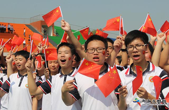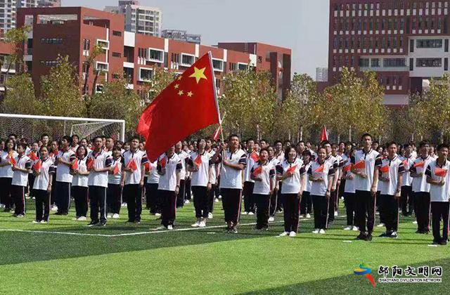 活动在升国旗、唱国歌中拉开序幕,全体师生们向鲜红的国旗敬礼,歌唱伟大的祖国,礼赞新时代。随着《美丽邵阳》《厉害了我的国》《壮丽航程》《歌唱祖国》一首首耳熟能详的歌声在邵阳市第一中学的操场响起,市一中的师生们用歌声和行动表达爱党、爱国之情,大家用行动和歌声表达了对新中国成立70周年的美好祝福,抒发对伟大祖国繁荣富强的衷心祝愿。