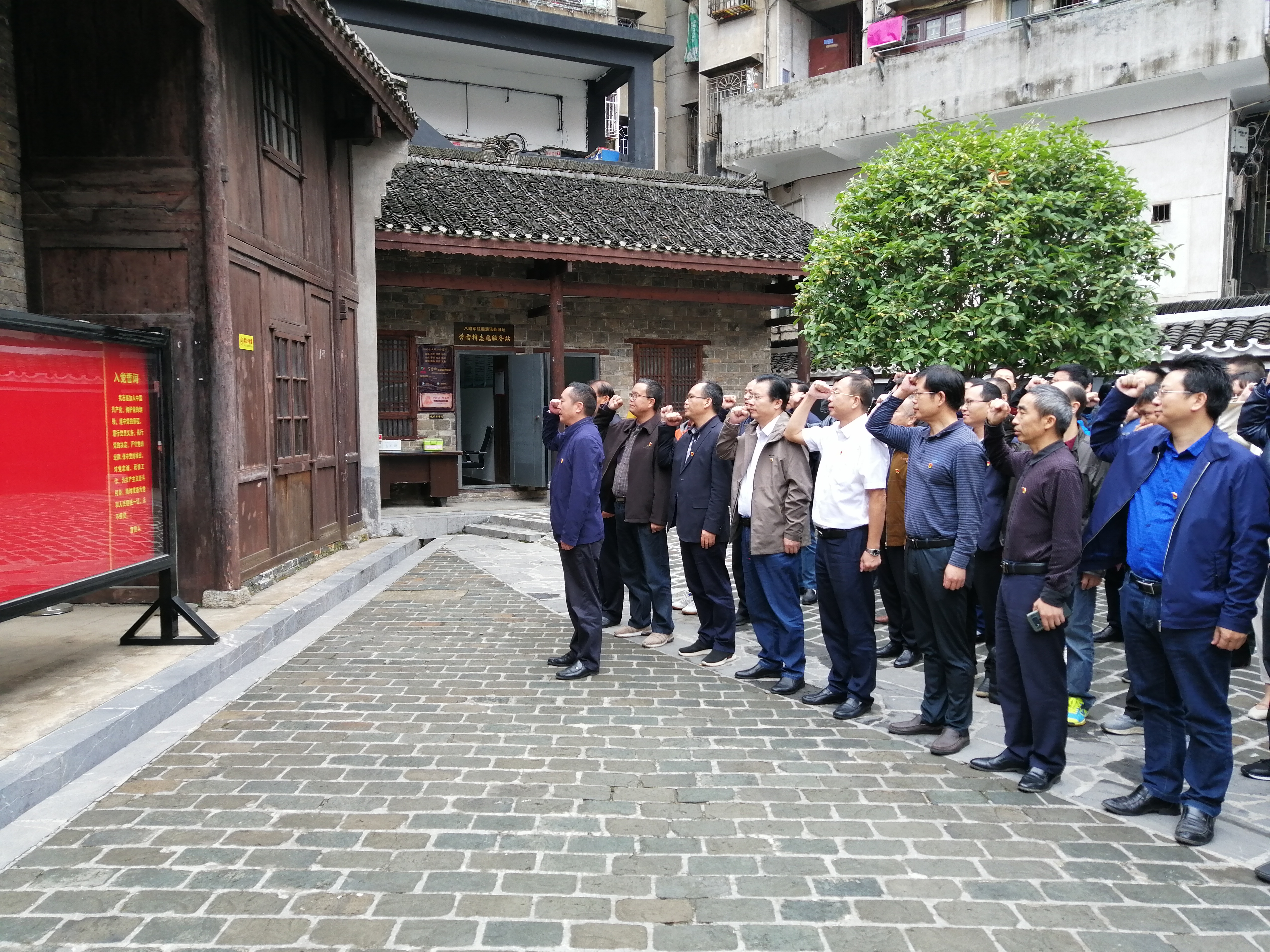 在八路军驻湘通讯处旧址,全体党员干部重温了入党誓词,并进行了参观。一张张老照片、一件件历史文物、一个个让人热血沸腾的革命故事加深了党员干部对邵阳革命历史的认识和对党的热爱。大家纷纷表示,深刻领会了老一批英勇无畏的共产党人,在条件异常艰苦、环境相当险恶的形势下,不忘初心、牢记使命、坚定信仰、勇于斗争的革命精神,今后将以更高的责任感和使命感投身于“三服务”,当好市委的“坚强前哨”和“巩固后院”。